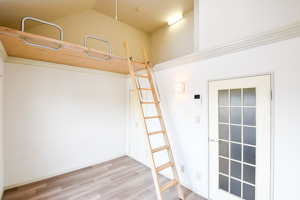 白い壁に木目調の床が清潔感ある印象を与える10帖のお部屋