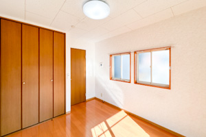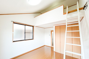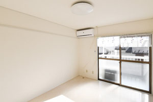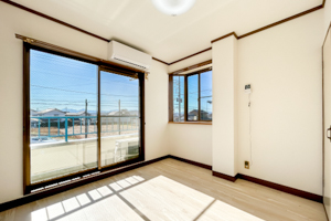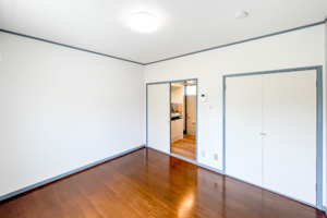 白い壁に木目調の床が清潔感ある印象を与える10帖のお部屋